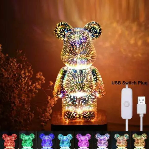 Нічник 3D Bearbrick Ведмедик KX197 8 кольорів, RGB+Warm Light