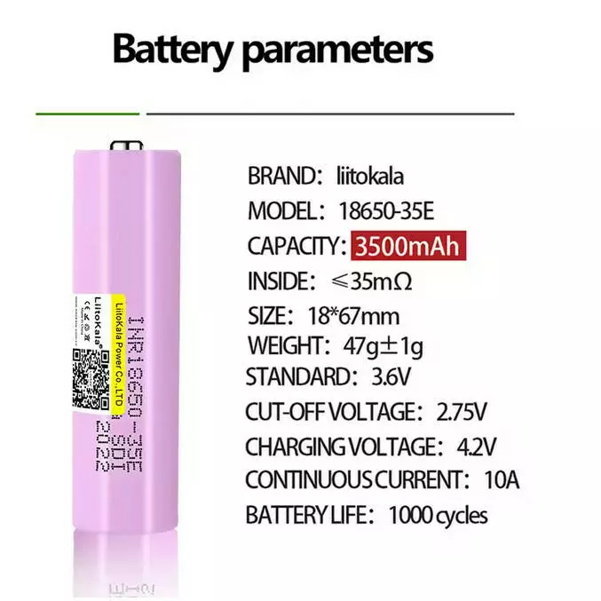 Аккумулятор 18650, LiitoKala 35E, 3500mAh, ОРИГІНАЛ