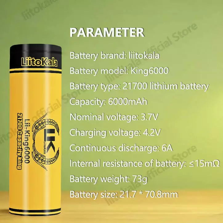 Аккумулятор 21700, LiitoKala King6000, 6000mAh, ОРИГІНАЛ