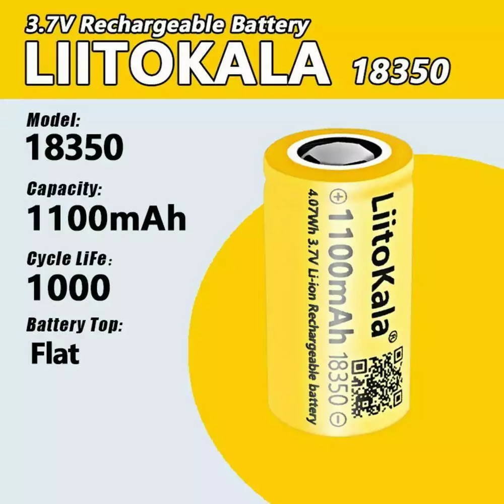 Акумулятор 18350, LiitoKala, 1100mAh, 3.7V
