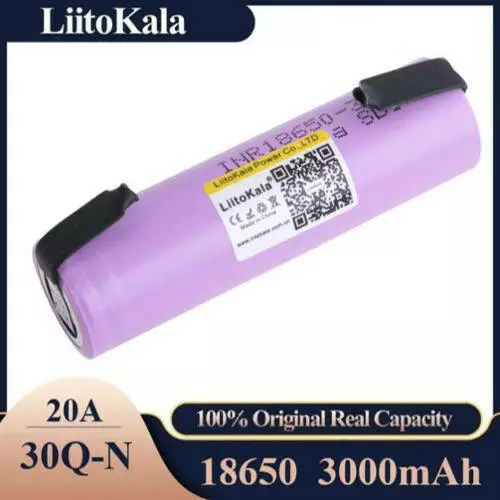 Акумулятор 18650, LiitoKala 30Q-N, 3000mAh, з контактами під паяння, ОРИГІНАЛ