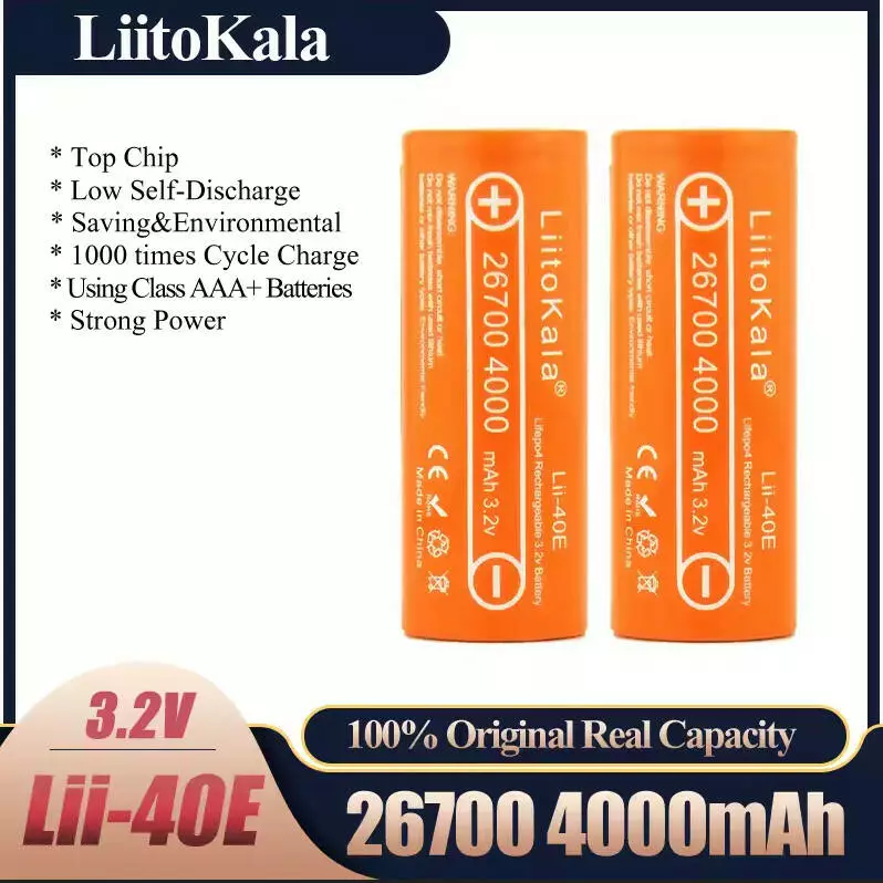 Акумулятор 26700, LiitoKala Lii-40E, 3.2V, 4000mAh, ОРИГИНАЛ