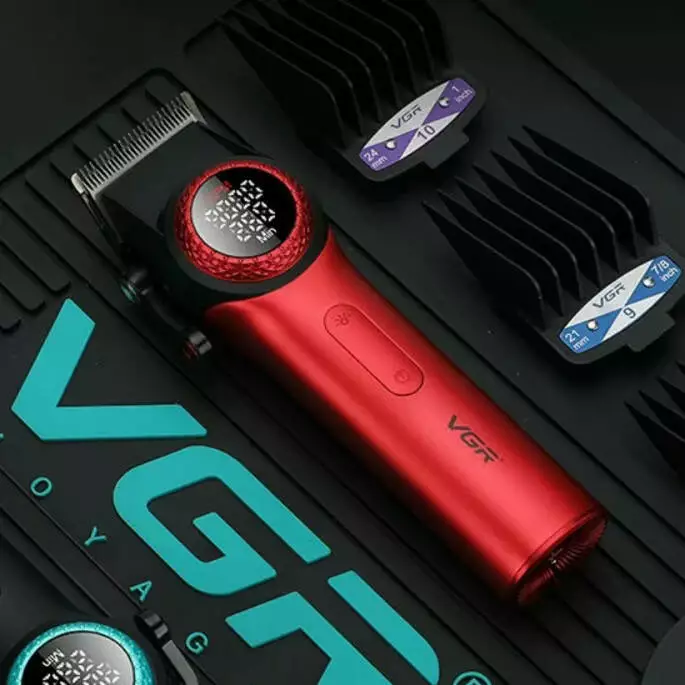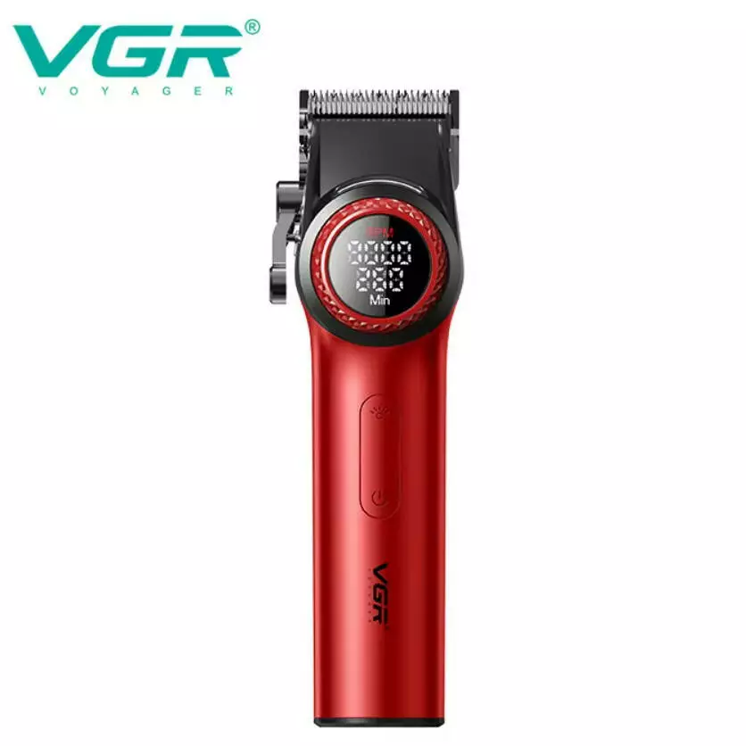 Акумуляторна машинка для стриження (clipper) VGR V-001 RED, 10 насадок, 9000 RPM, 4600 mAh, LED light, LED display