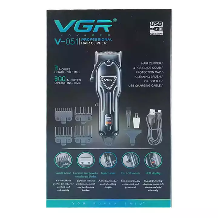 Акумуляторна машинка для стриження (clipper) VGR V-051, 4 насадки, 2500 mAh, LED display