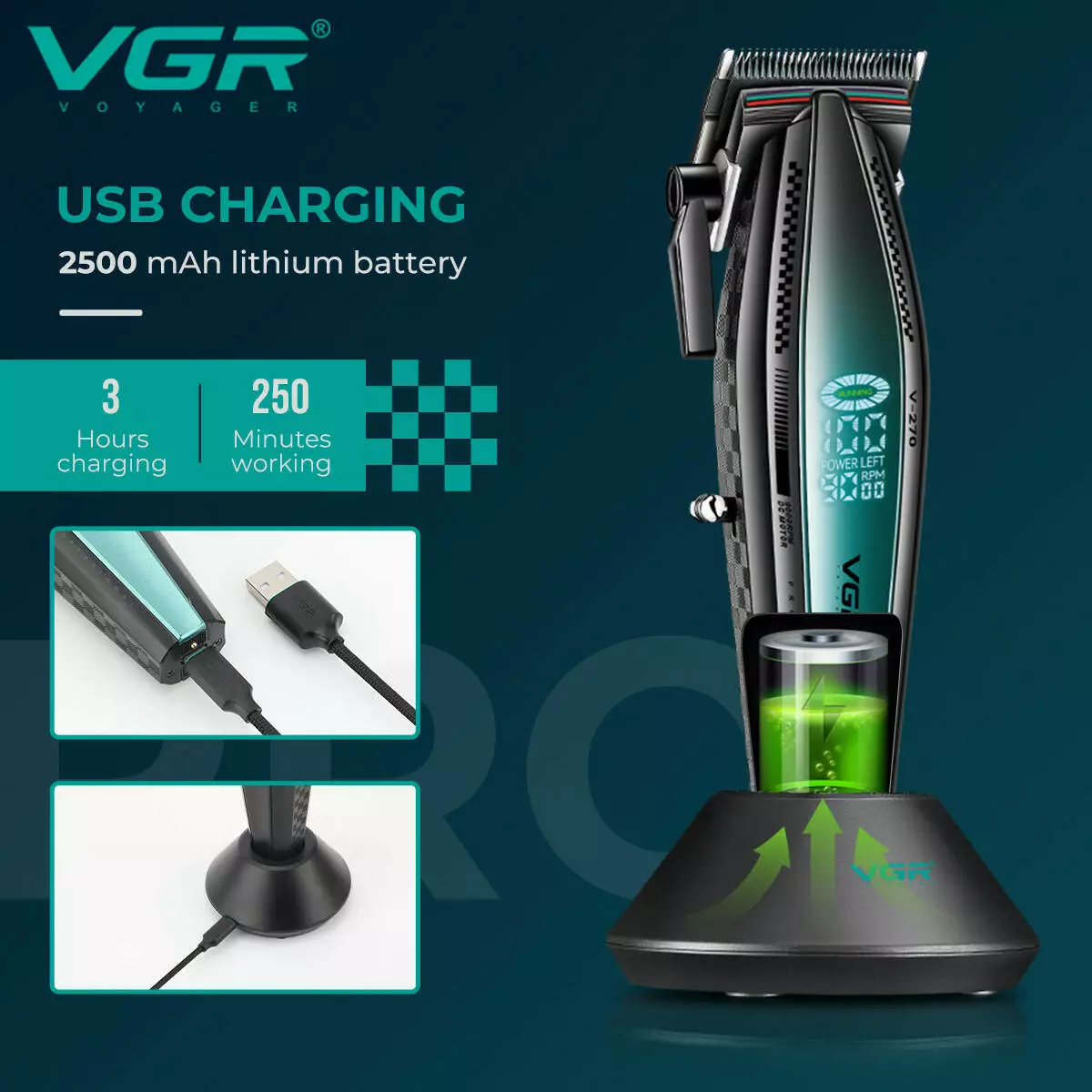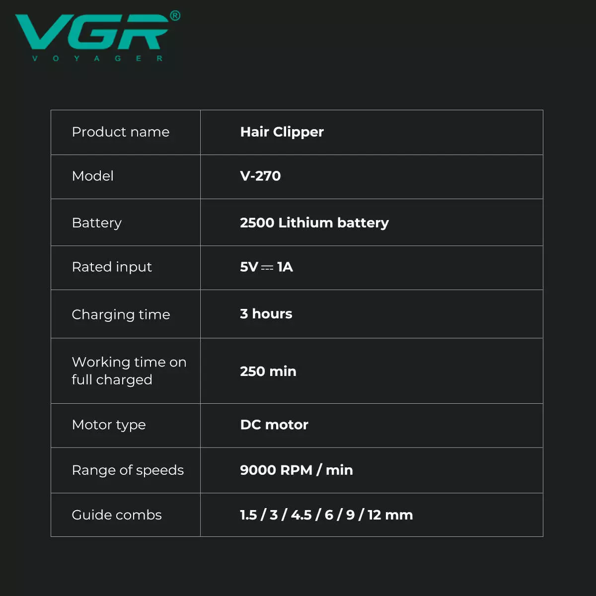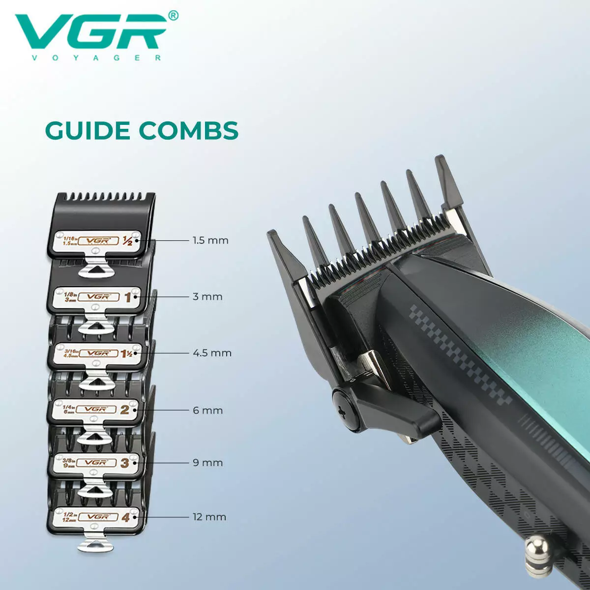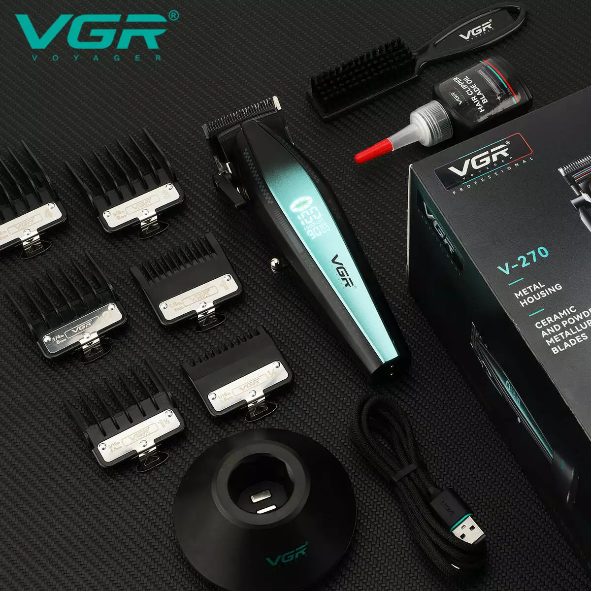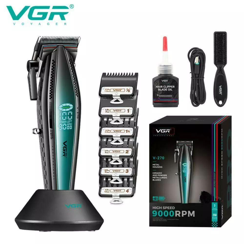Акумуляторна машинка для стриження (clipper) VGR V-270, 6 насадок, 9000 RPM, 2500 mAh, LED display
