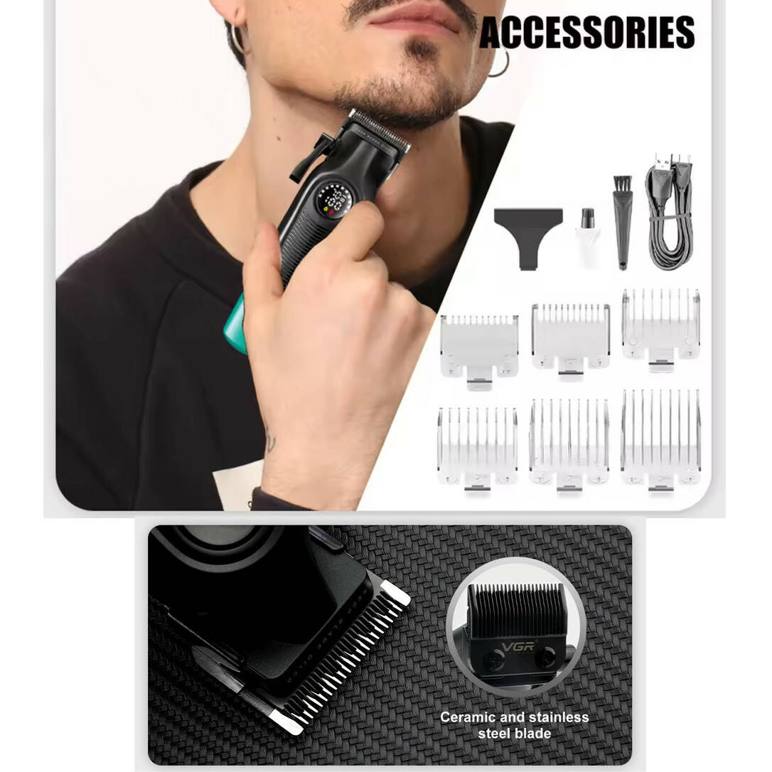 Акумуляторна машинка для стриження (clipper) VGRV-196 GREEN, 8 насадок, 7000 RPM, 2000 mAh, LED display