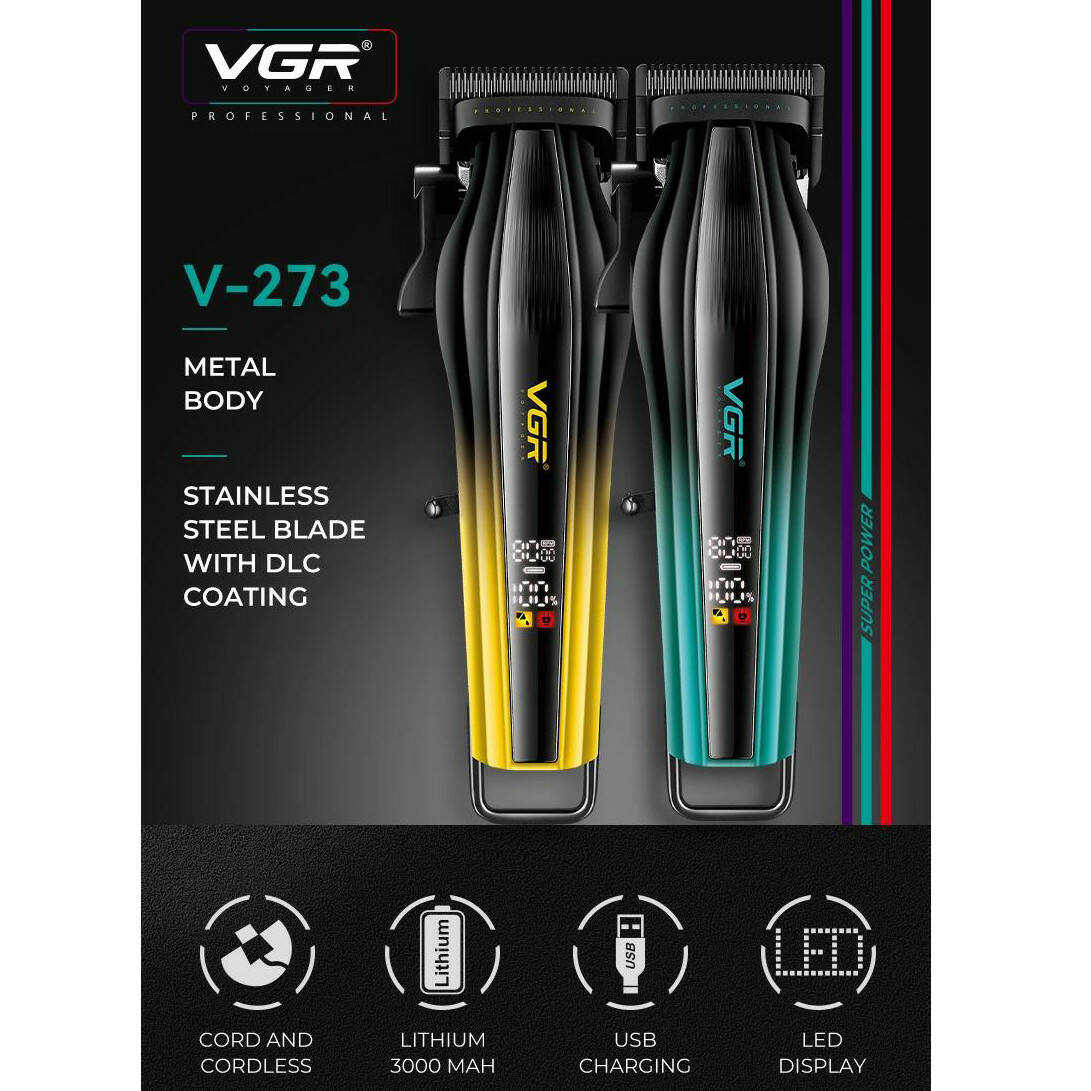 Акумуляторна машинка для стриження (clipper) VGRV-273 GREEN, 6 насадок, 8000 RPM, 3000 mAh, LED display