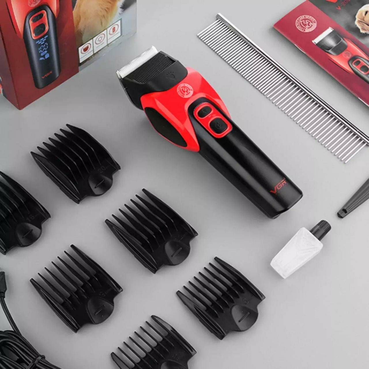 Акумуляторна машинка для стриження тварин VGR V-208 RED, 6 насадок, LED display