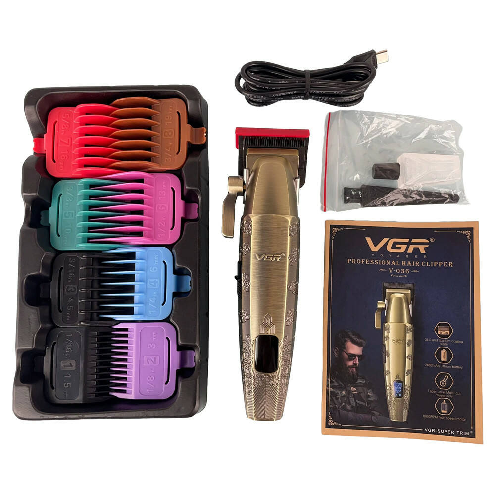 Акумуляторна машинка для стрижки (clipper) VGR V-036, 8 насадок, LED display