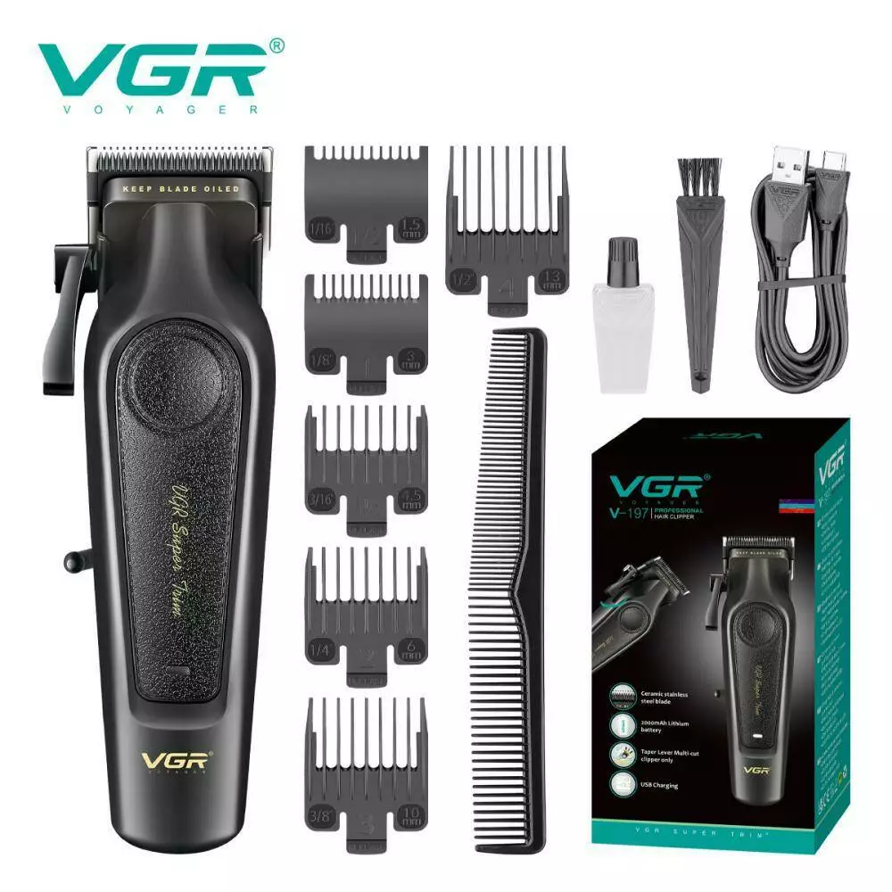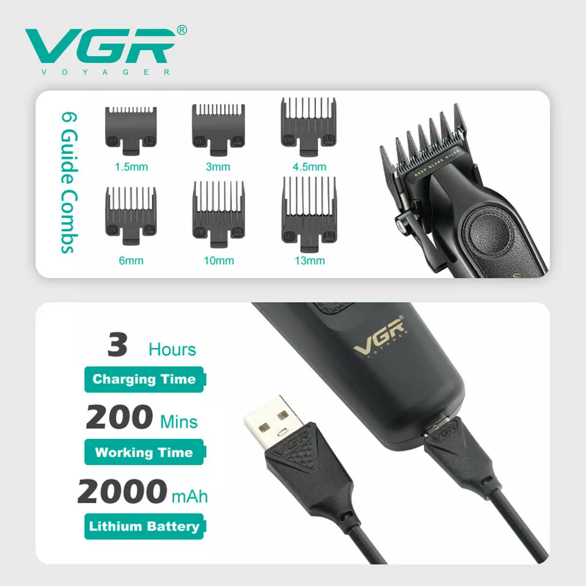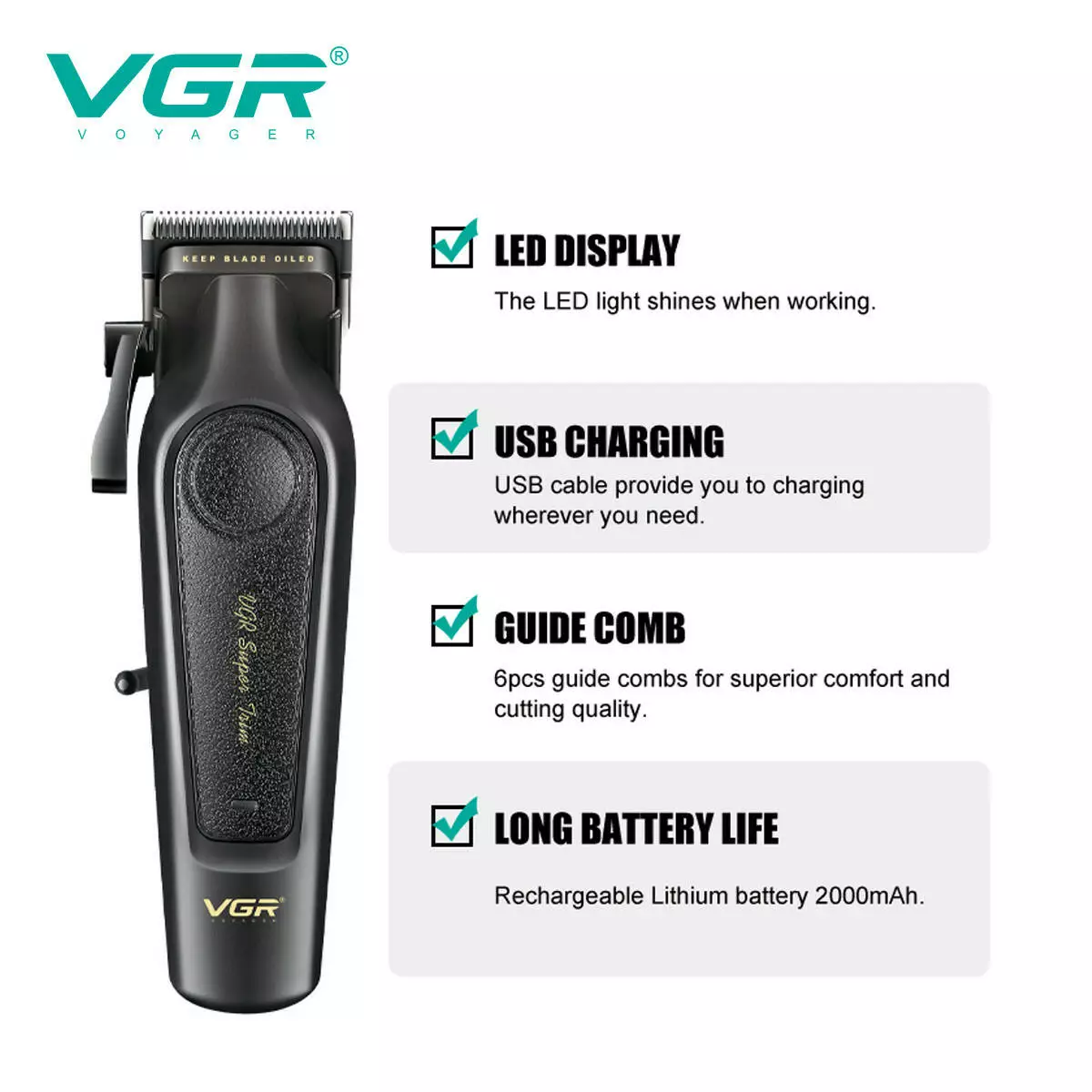 Акумуляторна машинка для стрижки (clipper) VGR V-197, 6 насадок, LED display