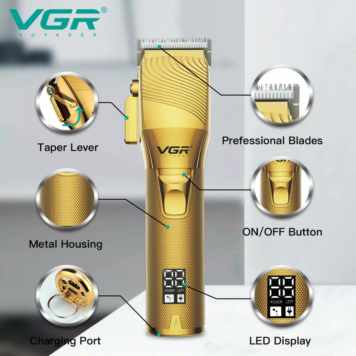 Акумуляторна машинка для стрижки (clipper) VGR V-280 BLACK, 6 насадок, LED display