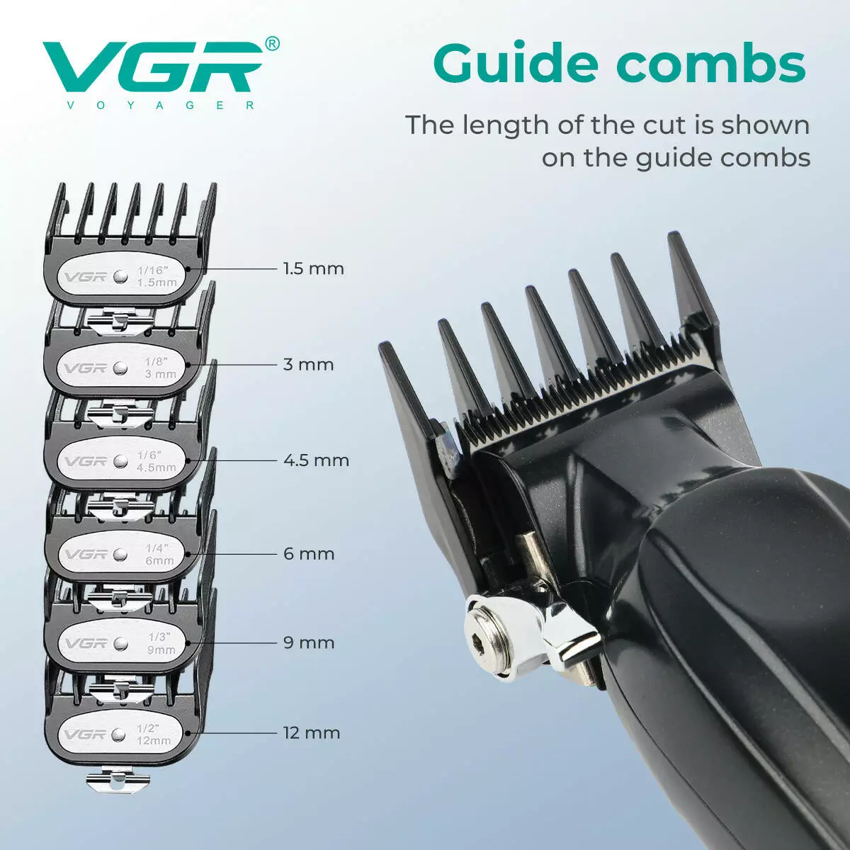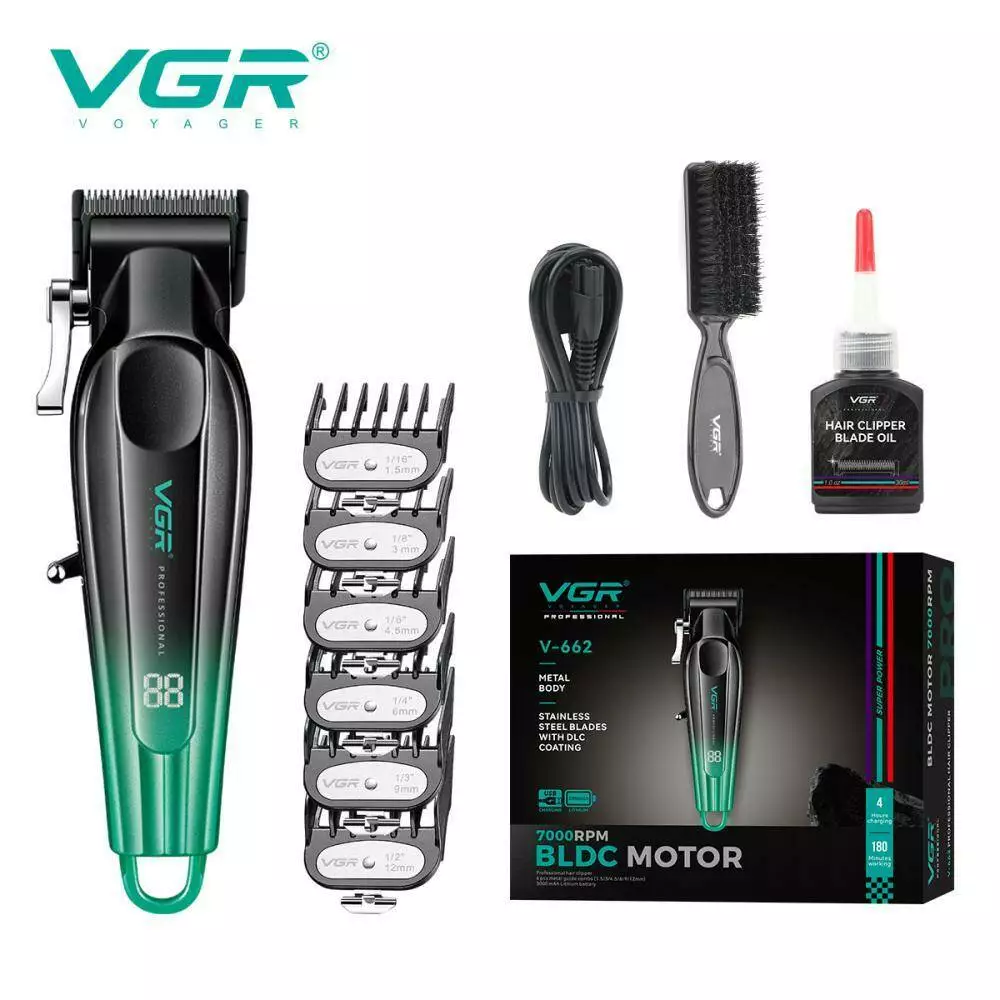 Акумуляторна машинка для стрижки (clipper) VGR V-662 GREEN, 7000 RPM, 6 насадок, LED display