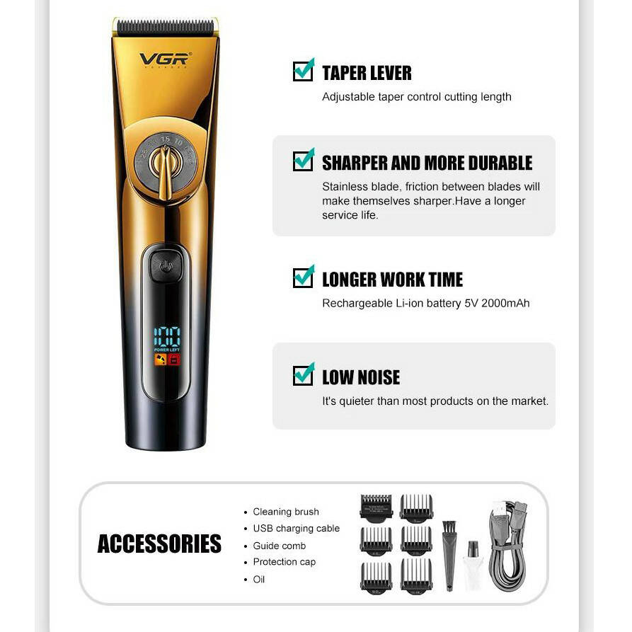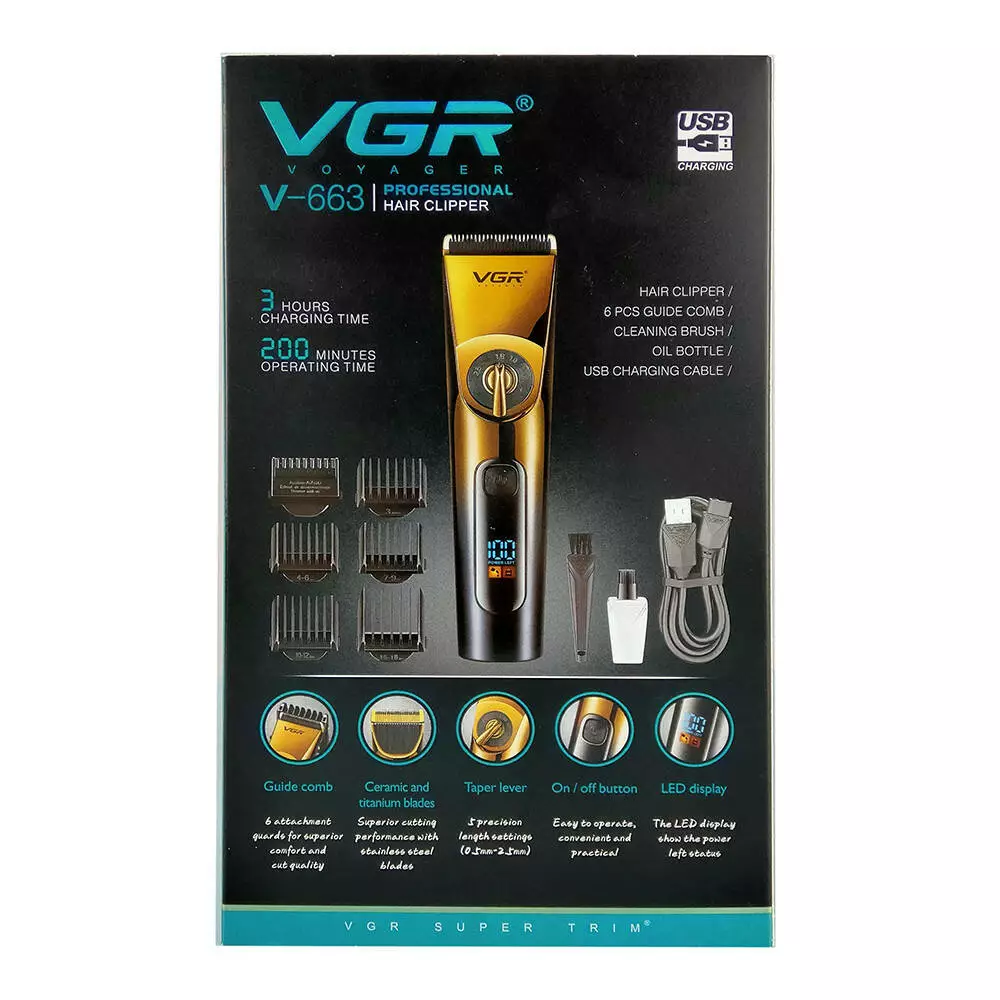 Акумуляторна машника для стриження (clipper) VGR V-663, 6 насадок, LED display, IPX6