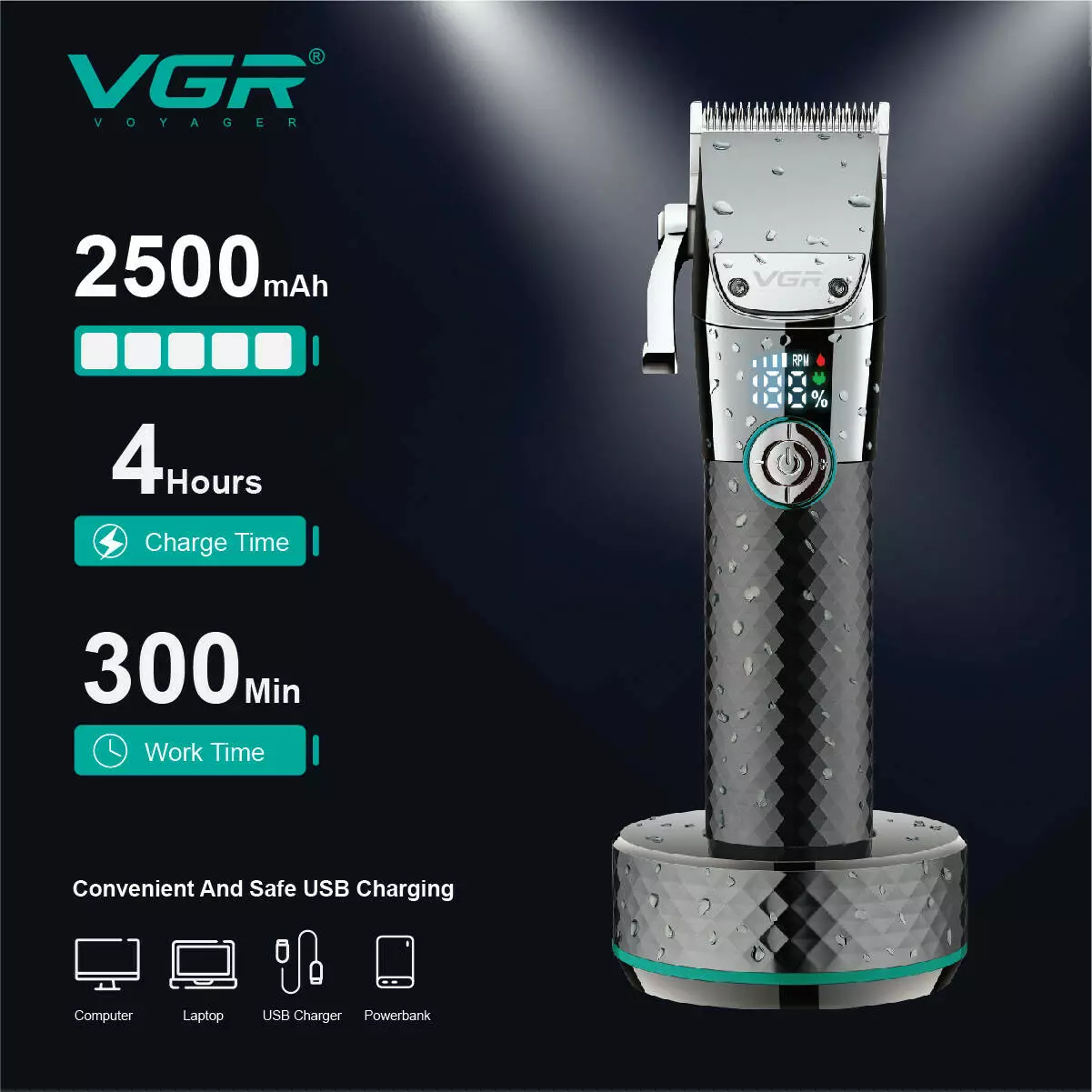 Акумуляторна машника для стриження (clipper) VGR V-682, 6 насадок, IPX7, LED display