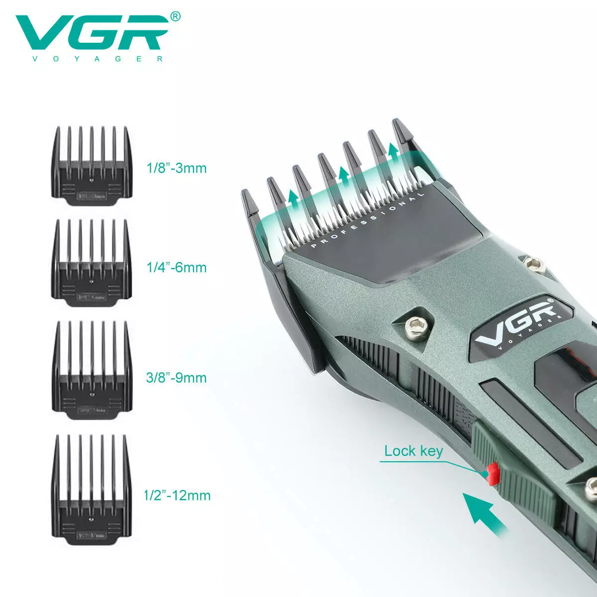 Акумуляторна машника для стриження (clipper) VGR V-696, 4 насадки, LED display