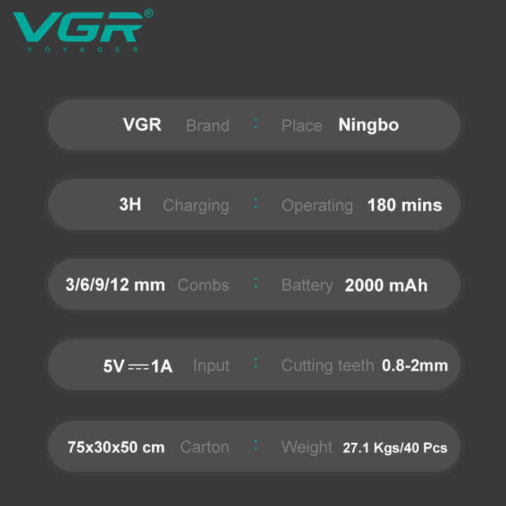 Акумуляторна машинка для стриження (clipper) VGR V-699 WHITE, 4