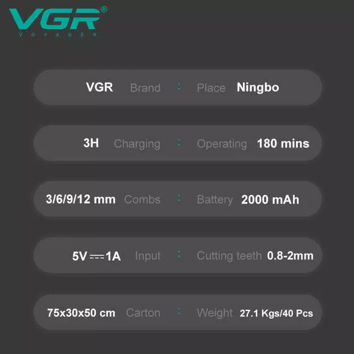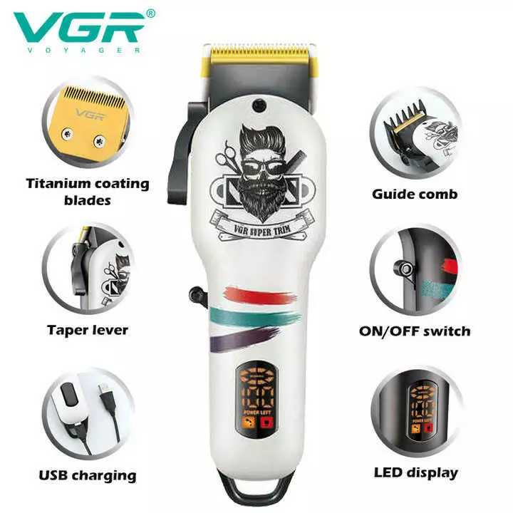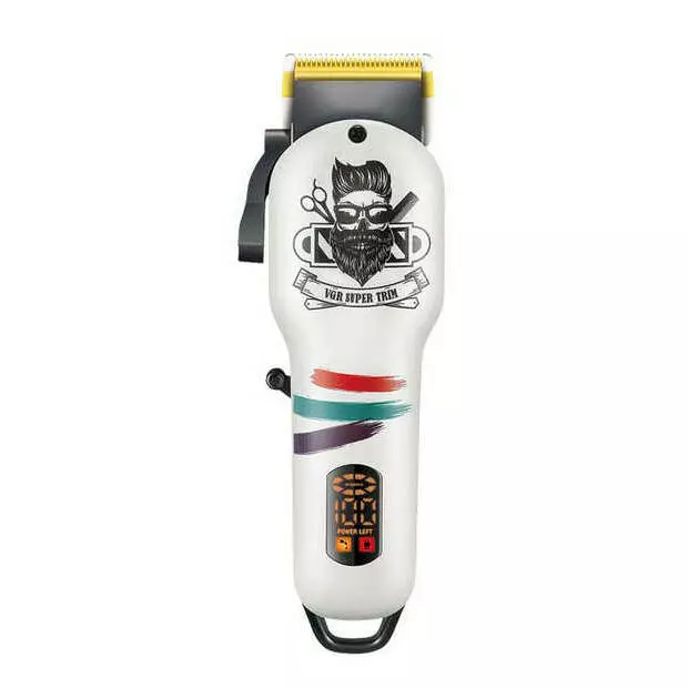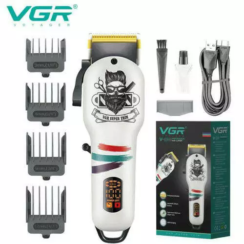 Акумуляторна машника для стриження (clipper) VGR V-699 WHITE, 4 насадки, LED display