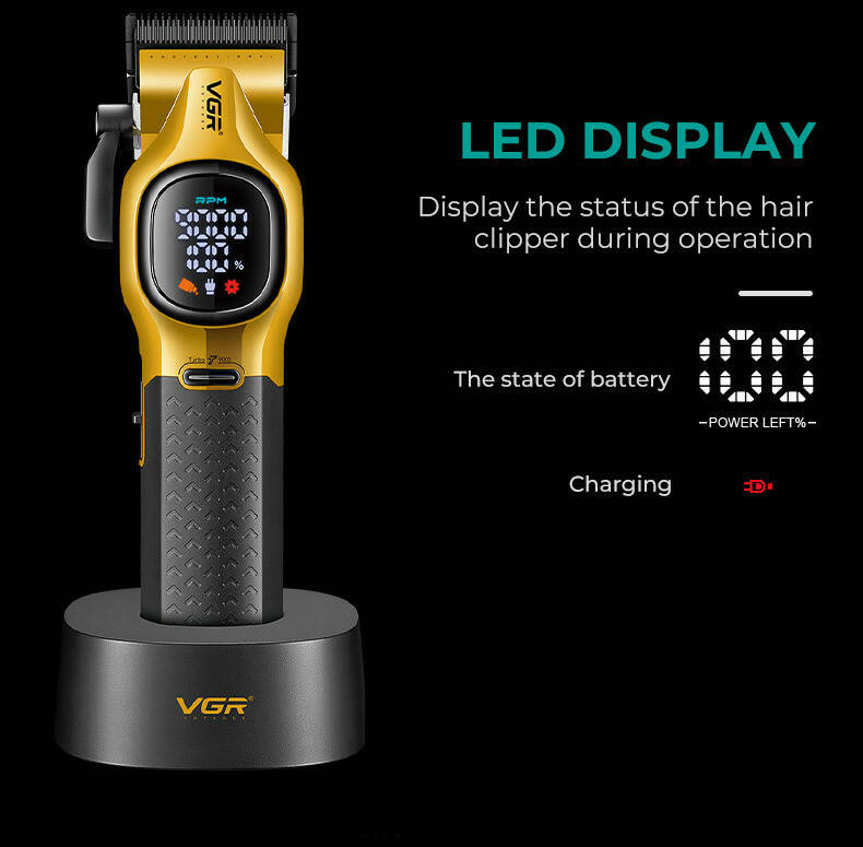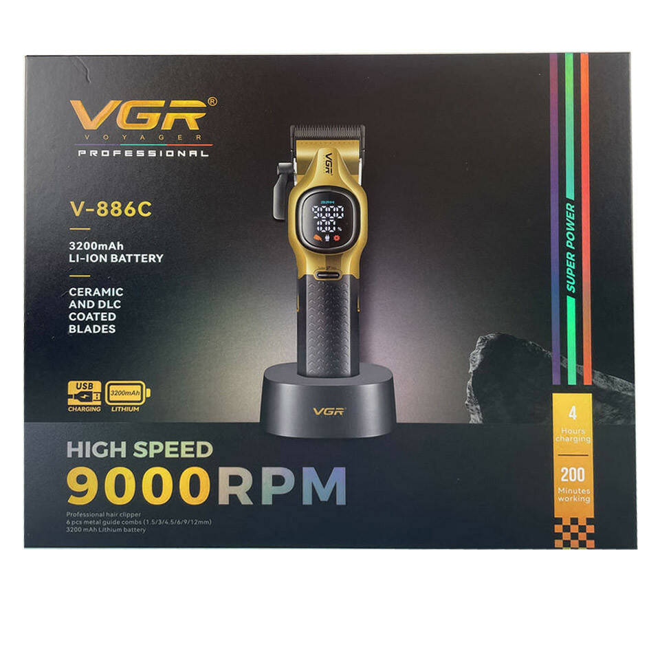 Акумуляторна машника для стриження (clipper) VGR V-886C GOLD, LED display, 9000RPM