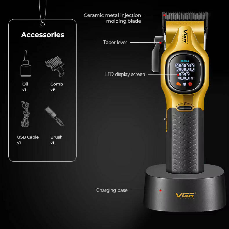 - Название (укр.): Акумуляторна машника для стриження (clipper) VGR V-886C GOLD, LED display