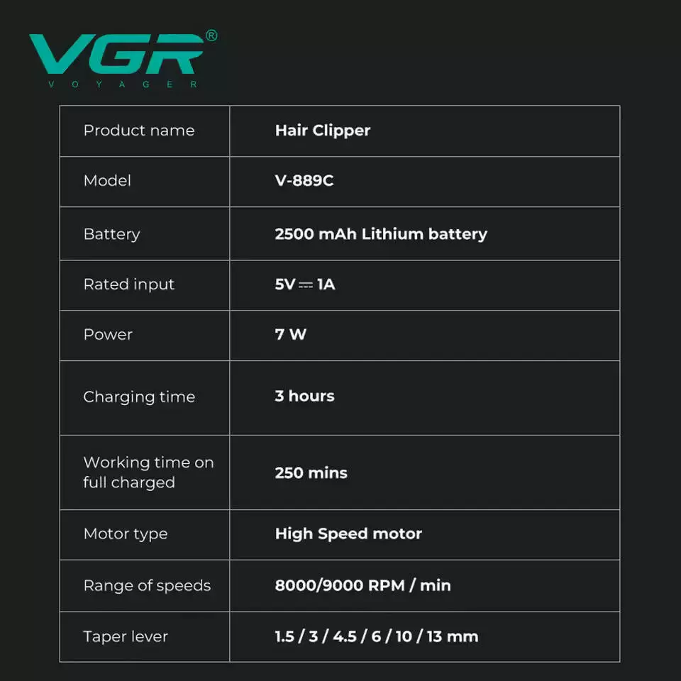 Акумуляторна машника для стриження (clipper) VGR V-889C, 6 насадок, LED display, 9000RPM
