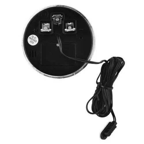 5. Є термометр. Показує внутрішню та зовнішню температуру. Датчик внутрішньої температури вбудований в годинник, виносний датчик зовнішньої температури має довжину дроту 3 метри. Показання в градусах цельсію та фаренгейту. Діапазон показань варіюється від -50 до +70 градусів за Цельсієм. Похибка термометра +/- 1.0 градуса цельсія. Частота оновлення показань температури – 20 секунд.