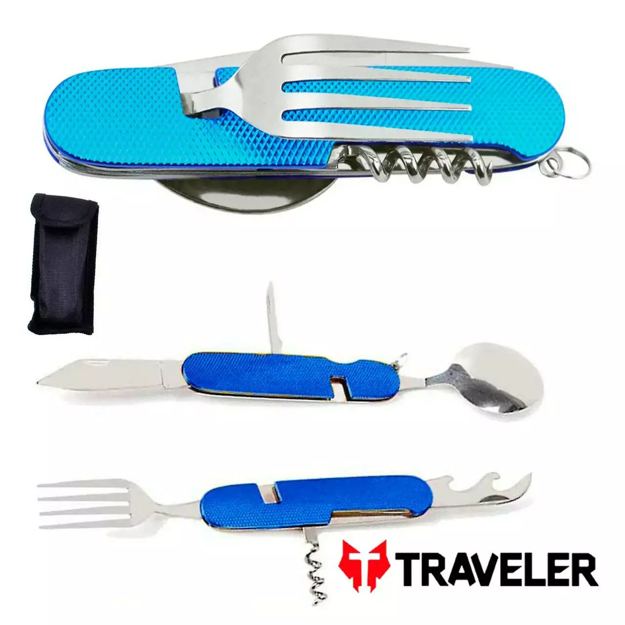 Багатофункціональний набір для кемпінгу 6 в 1 із нержавіючої сталі A-106 Black/Blue