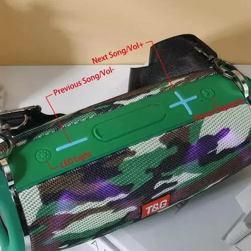 Bluetooth-колонка TG642 з RGB ПІДСВІЧУВАННЯМ, speakerphone, радіо, camouflage