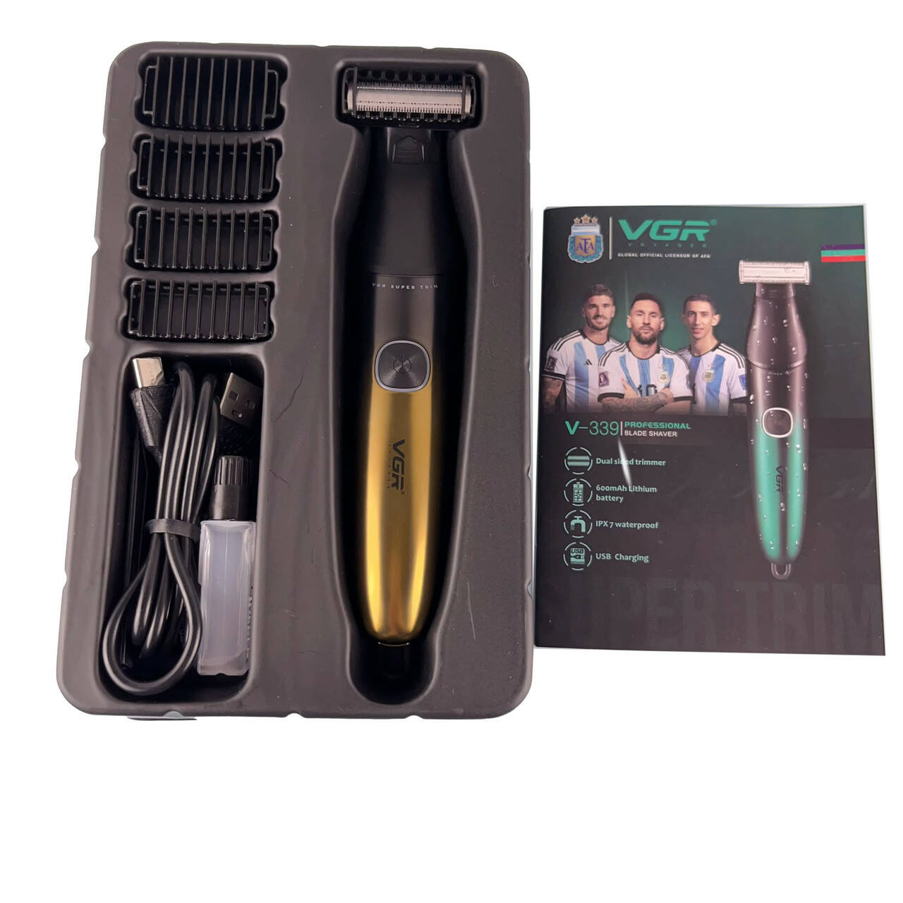 Бритва-триммер для стрижки бороди та вусів VGR V-339 GOLD, 4 насадки, IPX7