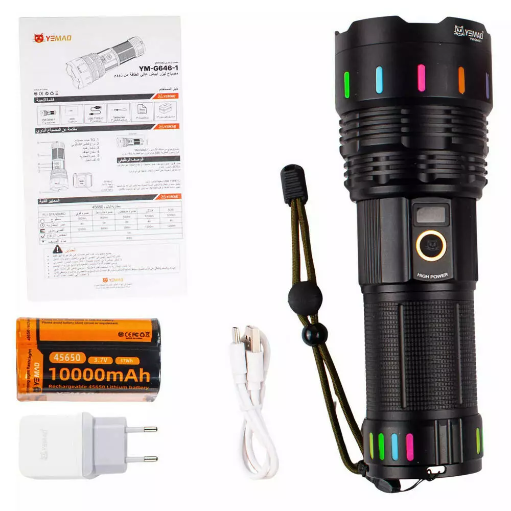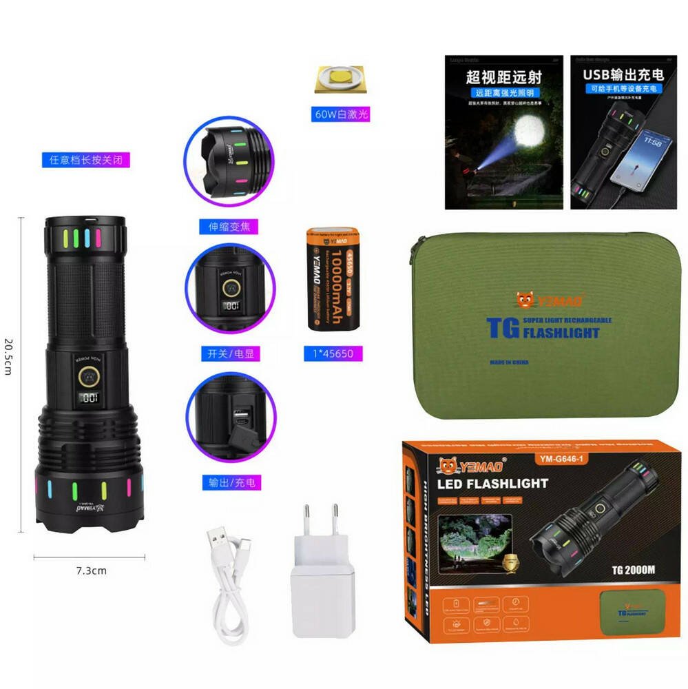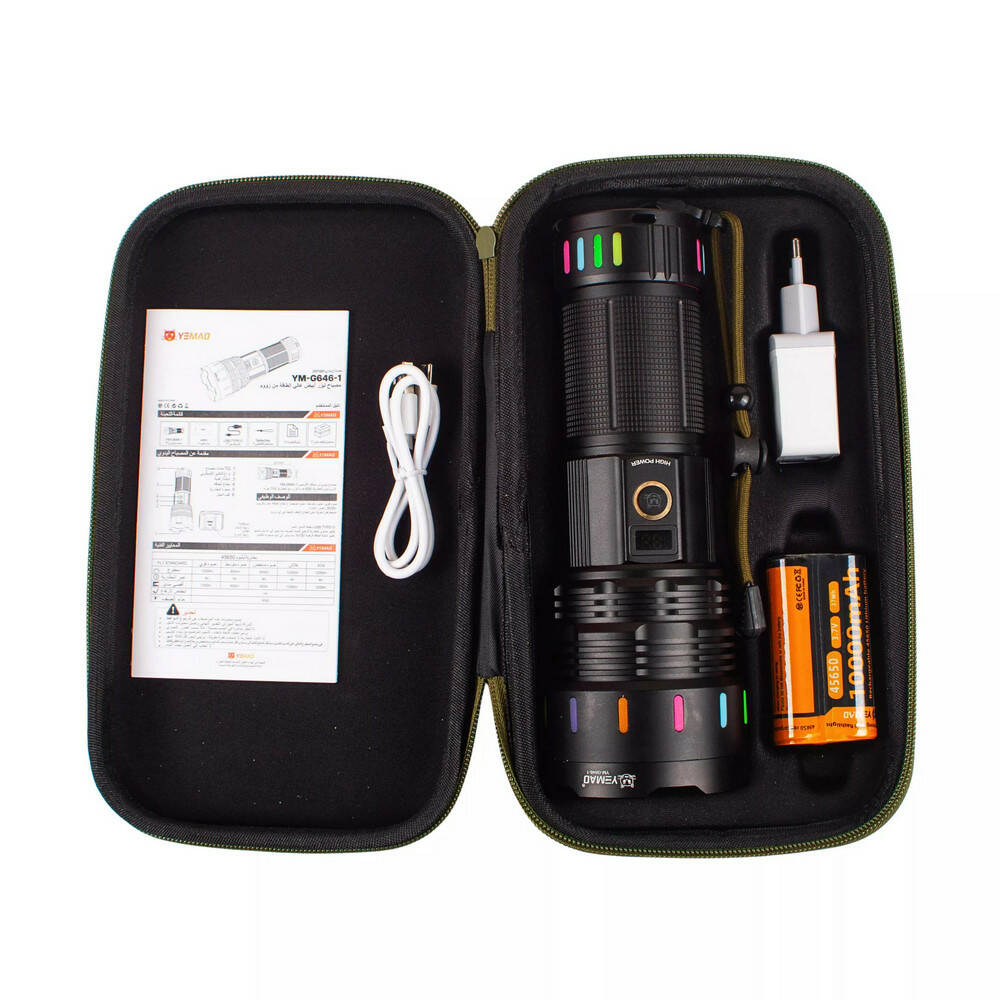 Далекобійний ліхтар YEMAO YM-G646-1, 4000LM, акумулятор 45650 (10000 mAh), чохол, блок живлення