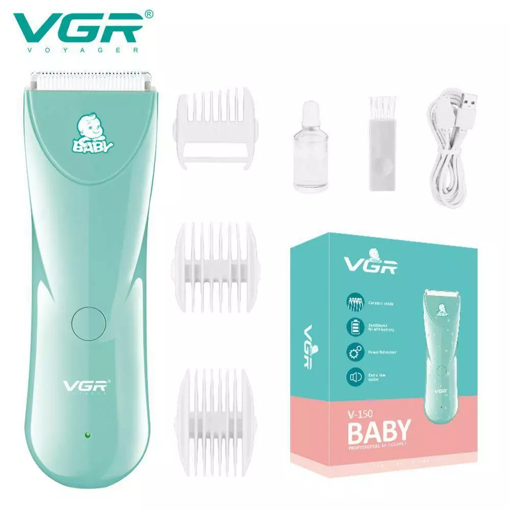 Дитяча машинка для стриження VGR V-150 MINT, 3 безпечні насадки, бесшумна, IPX7