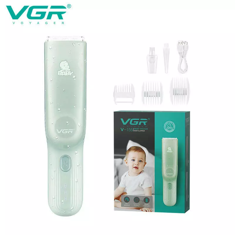 Дитяча машинка для стриження з функцією збору волосся VGR V-155 GREEN, 3 безпечні насадки, бесшумна, IPX8