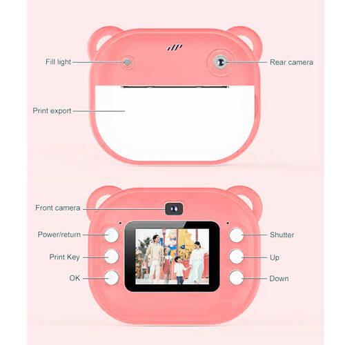 Дитячий фотоапарат миттєвого друку Y600, PINK з підтримкою microSD