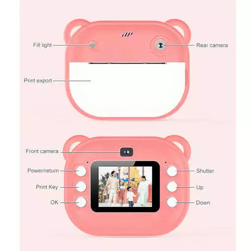 Дитячий фотоапарат миттєвого друку Y600, PINK з підтримкою microSD card, 3Y+