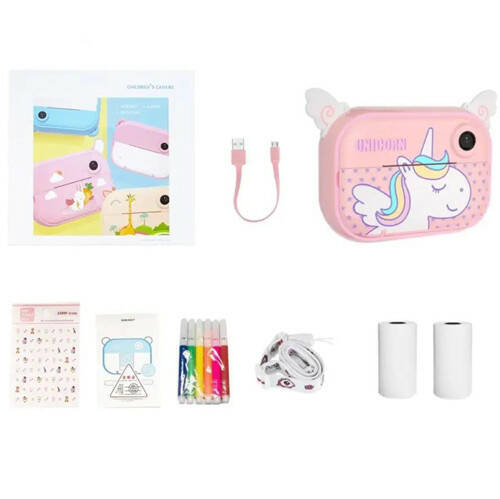 Дитячий фотоапарат миттєвого друку YT008, PINK UNICORN з підтримкою