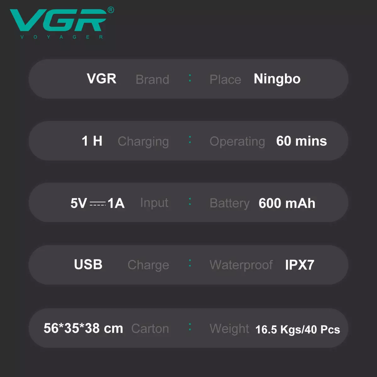 Електробритва VGR 3 в 1 V-303, 3 насадки, IPX7, LED display