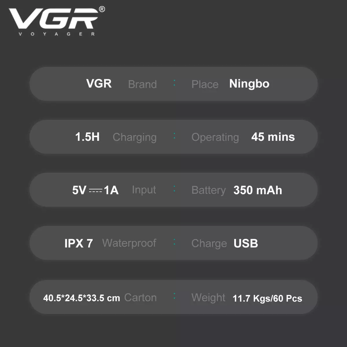 Електробритва VGR V-345 GREY, роторна, IPX7