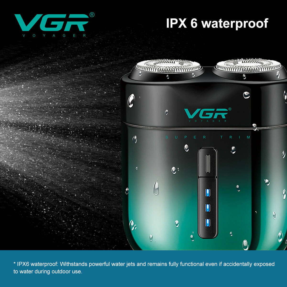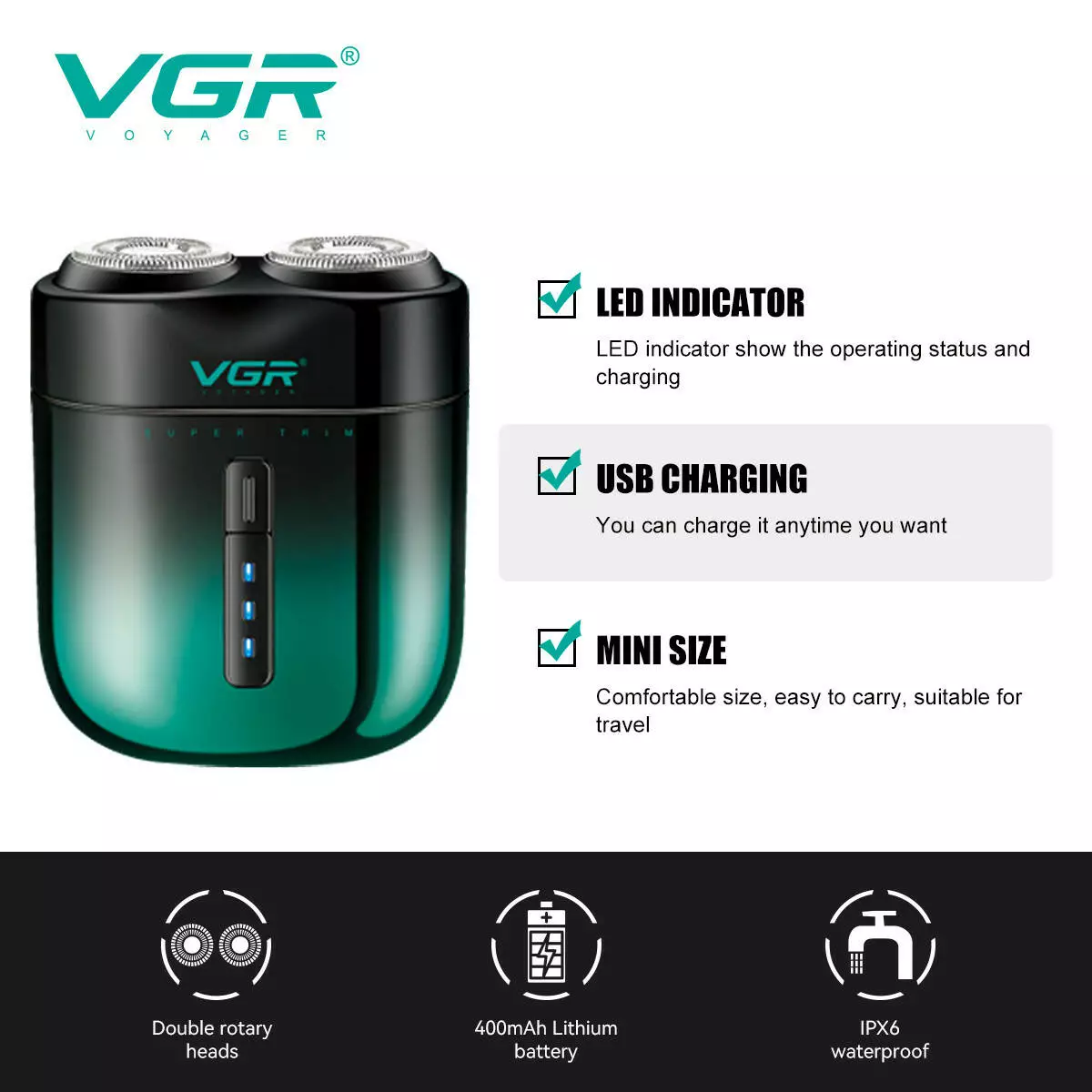 Електробритва VGR V-348 GREEN, роторна, IPX6
