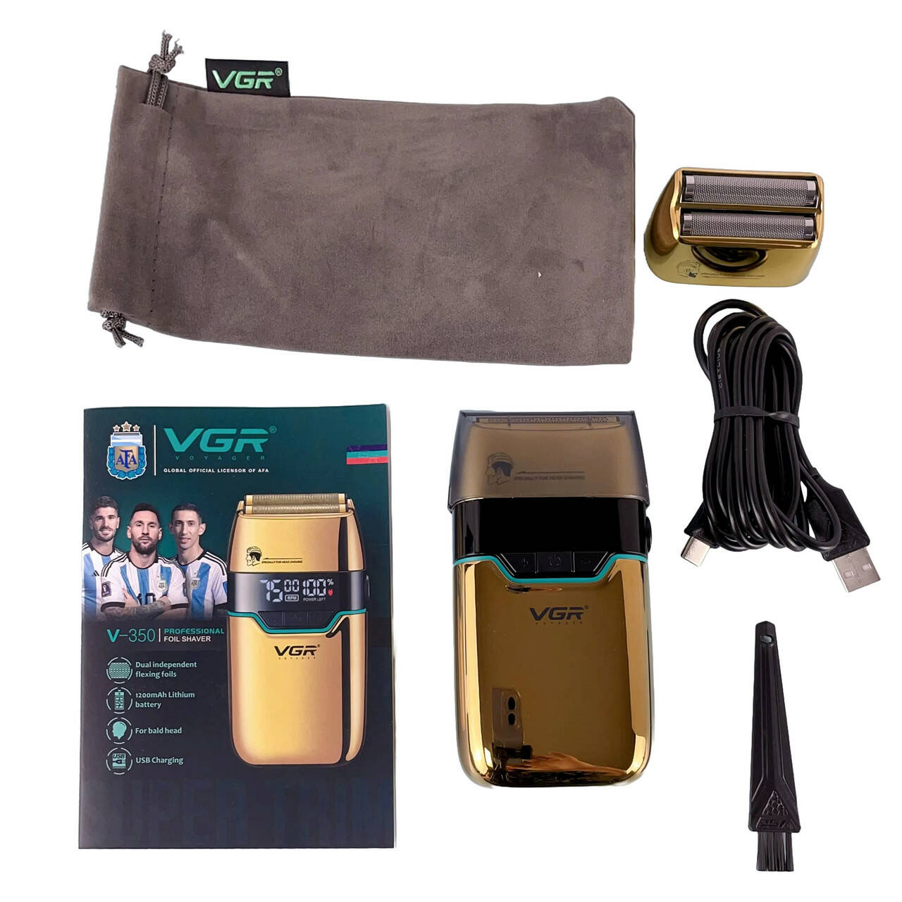 Електробритва VGR V-350 GOLD шейвер, подвійне лезо, 2 насадки, LED Display