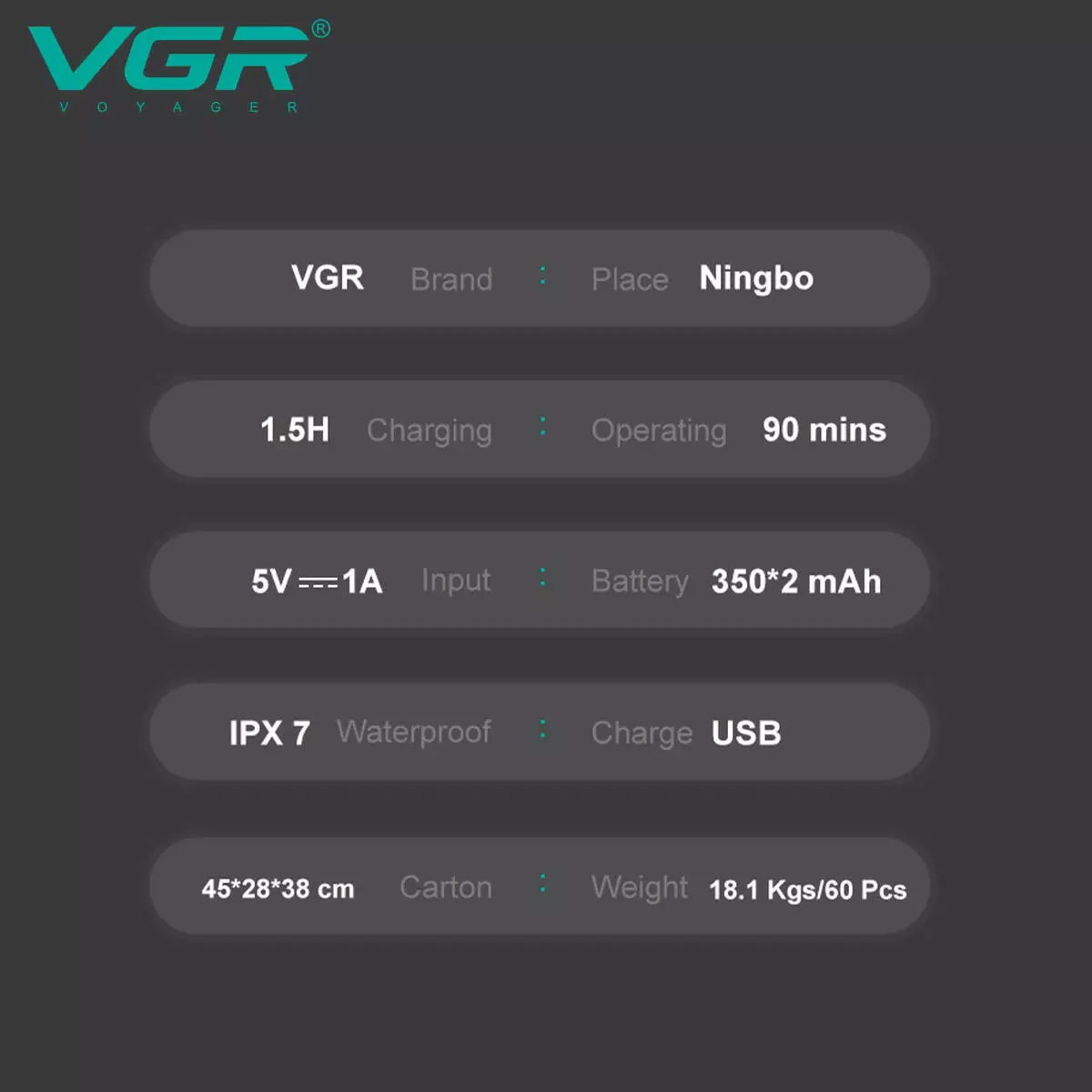 Електробритва VGR V-379 шейвер, подвійне лезо, IPX7