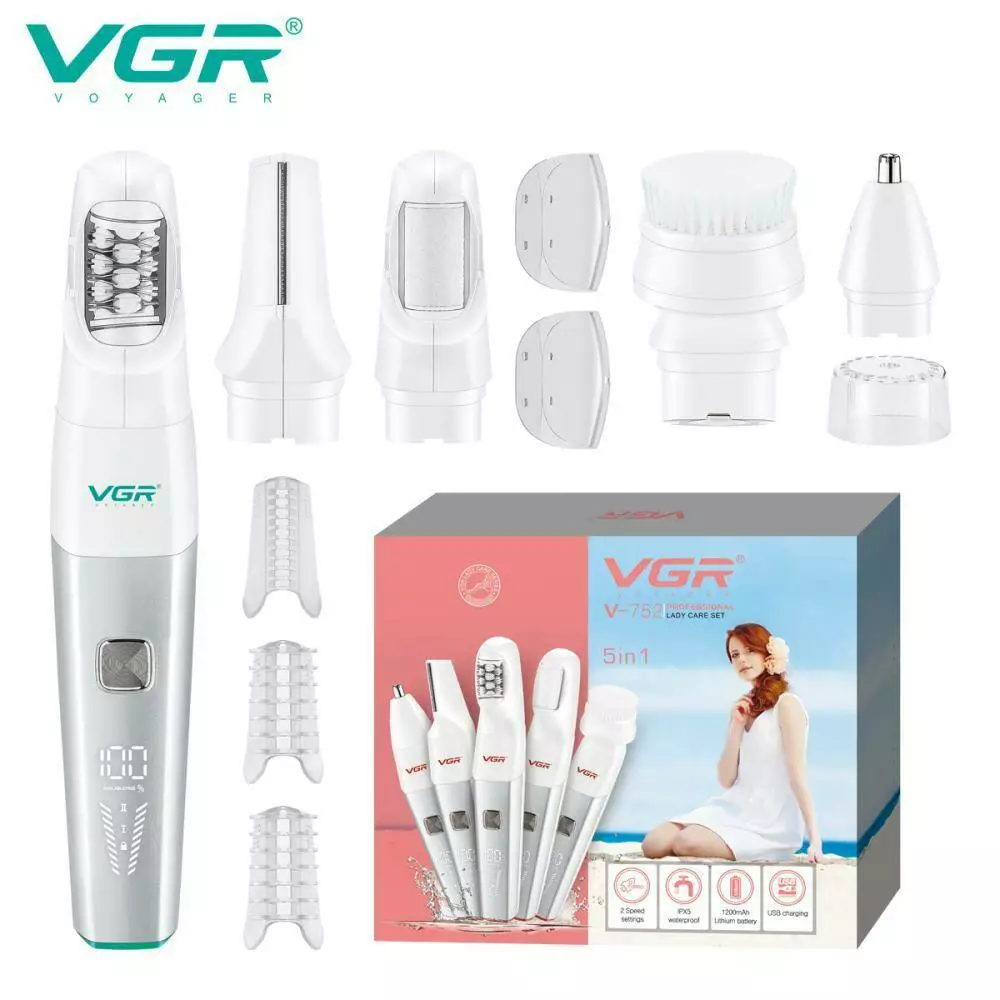 Епілятор VGR 5 в 1 V-752 GREEN, 5 насадок, IPX5