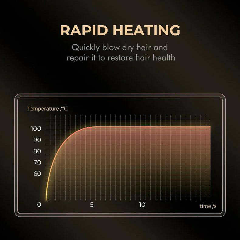 - Регулювання обдування та температури: 40 рівнів обдування (7000–11 000 об/хв) та 40 температурних режимів (60–100°C) дозволяють точно налаштувати фен під індивідуальні потреби.