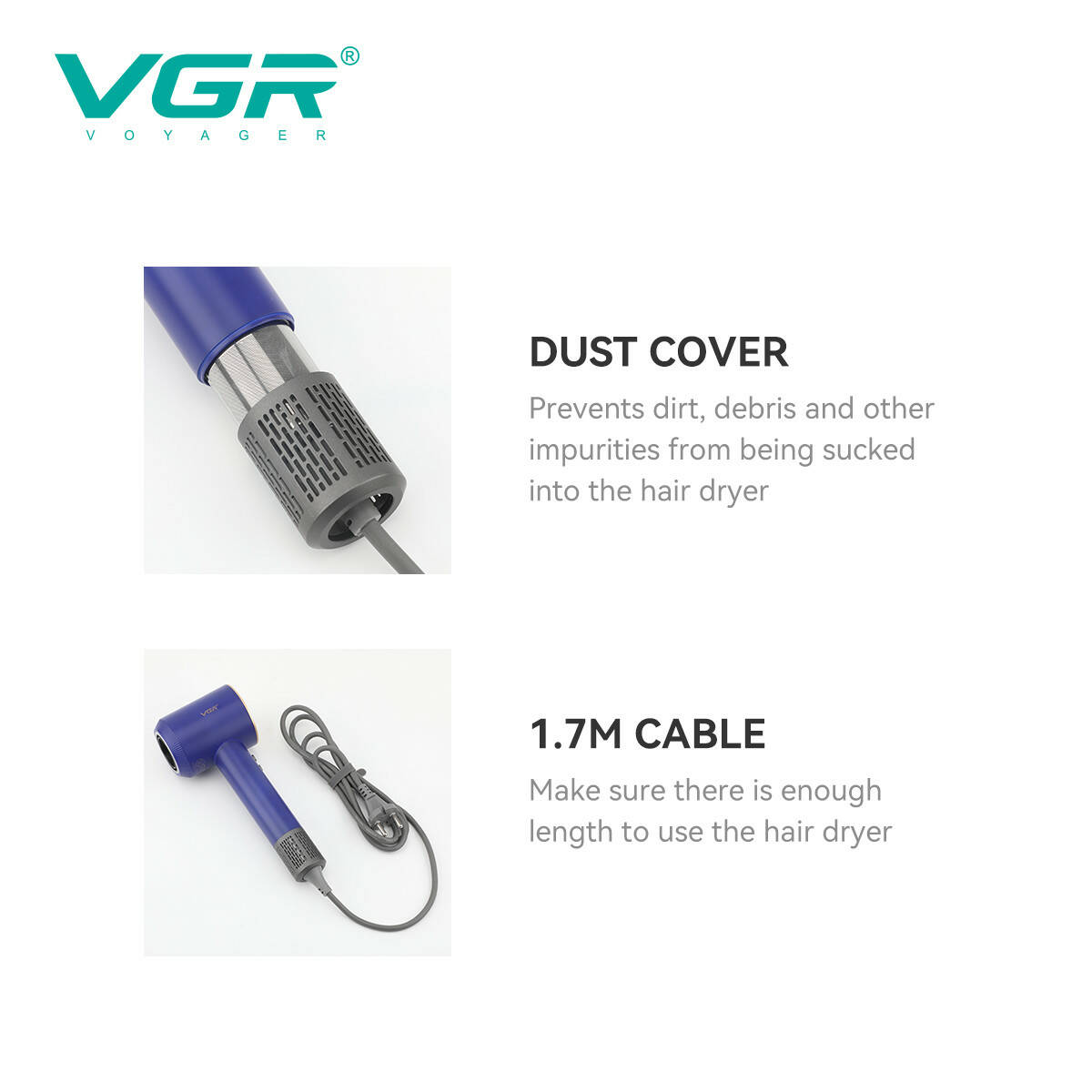 Фен професійний VGR V-445 BLUE, 3 рівні обдування, 4 рівні температури, 1600 Вт, 110000 RPM