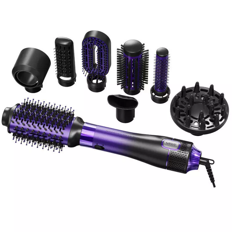 Фен-щітка-стайлер VGR V-488, змінні насадки 8шт, інструкція англійською мовою, упаковка