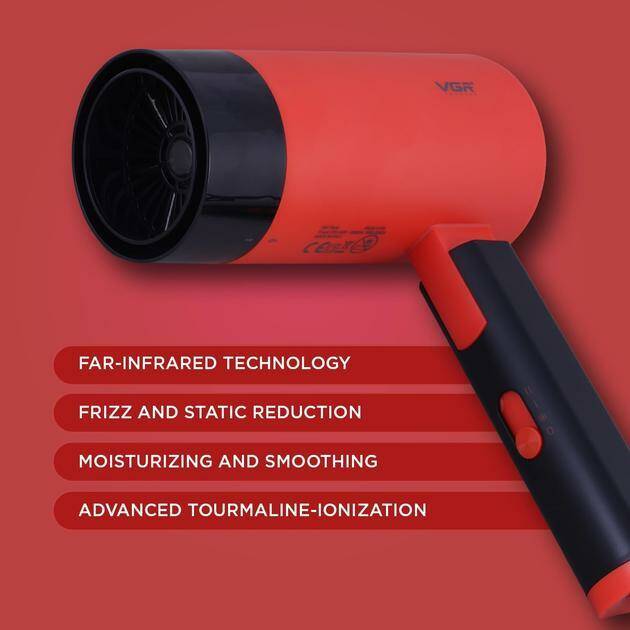 Фен складаний VGR V-426 RED, 2 рівні обдування, 3 рівні температури, 1600-2000 Вт