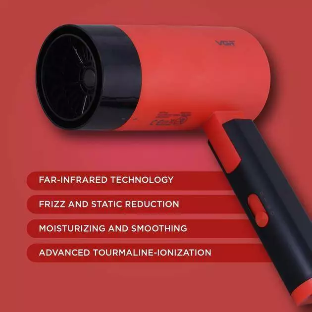 Фен складаний VGR V-426 RED, 2 рівні обдування, 3 рівні