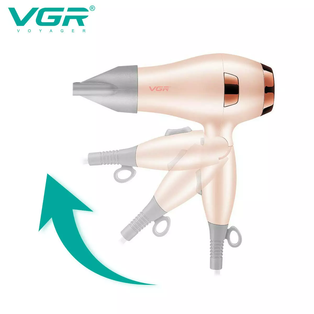 Фен складаний VGR V-432 GREEN, 3 рівні обдування, низький рівень шуму, 1000 Вт