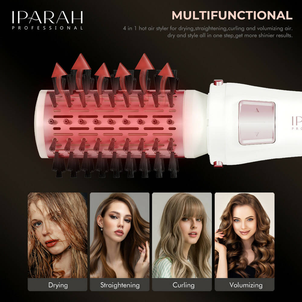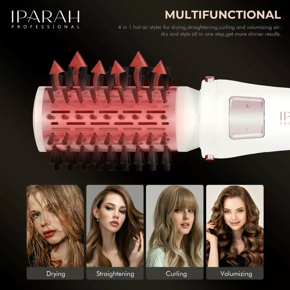 Багатофункціональний електричний стайлер-щітка IPARAH P‑270 2-в-1 Multi-Styler з гарячою повітряною щіткою та автоповоротом – це поєднання фена, стайлера та інструменту для завивки та випрямлення волосся в одному пристрої. Прилад оснащений потужним AC-мотором та оптимальним діапазоном потужності, що забезпечує швидкий та рівномірний потік теплого повітря для укладання волосся будь-якого типу. Регульовані режими швидкості обдування та температури дозволяють підібрати оптимальні параметри для створення об'єму, гладкості чи легких хвиль. Функція холодного повітря фіксує зачіску після укладання, а гаряча щітка, що обертається, робить процес комфортним і природним. Ергономічний дизайн, зручне керування та довгий кабель забезпечують високий рівень комфорту при щоденному укладання як вдома, так і в салоні.