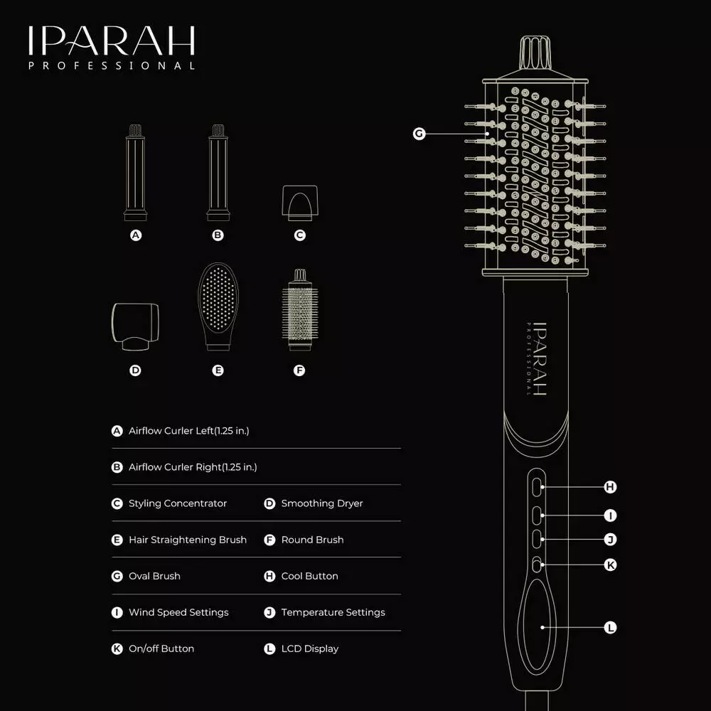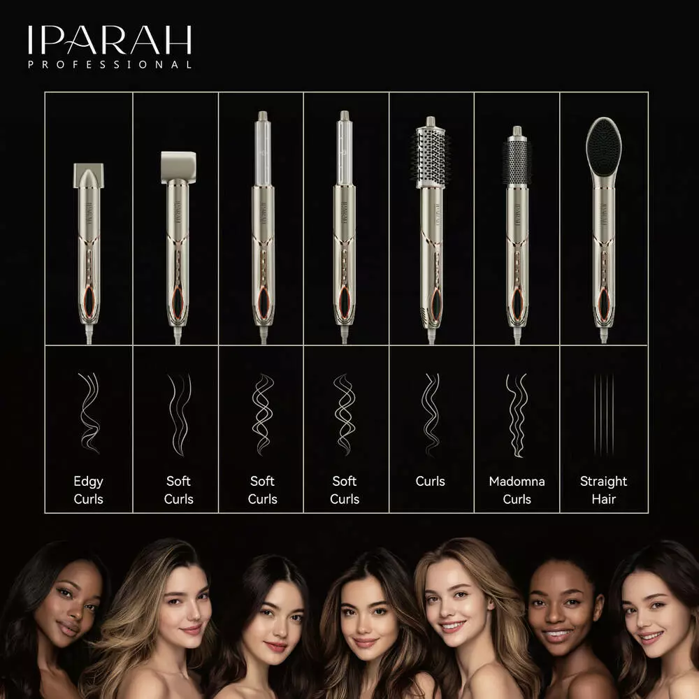 IPARAH P-510 - це професійний багатофункціональний мультистайлер 7-в-1, призначений для швидкого сушіння, завивки, випрямлення та створення об'єму без перегріву волосся. Оснащений високошвидкісним BLDC-мотором, потужним повітряним потоком та технологією негативних іонів, яка зменшує пухнастість, знижує статичну електрику та надає волоссю гладкості та блиску.