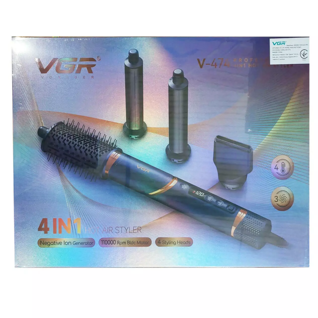 Фен-стайлер VGR 4 в 1 V-474 DARK BLUE, Professional, 4 насадки, 1400 Вт