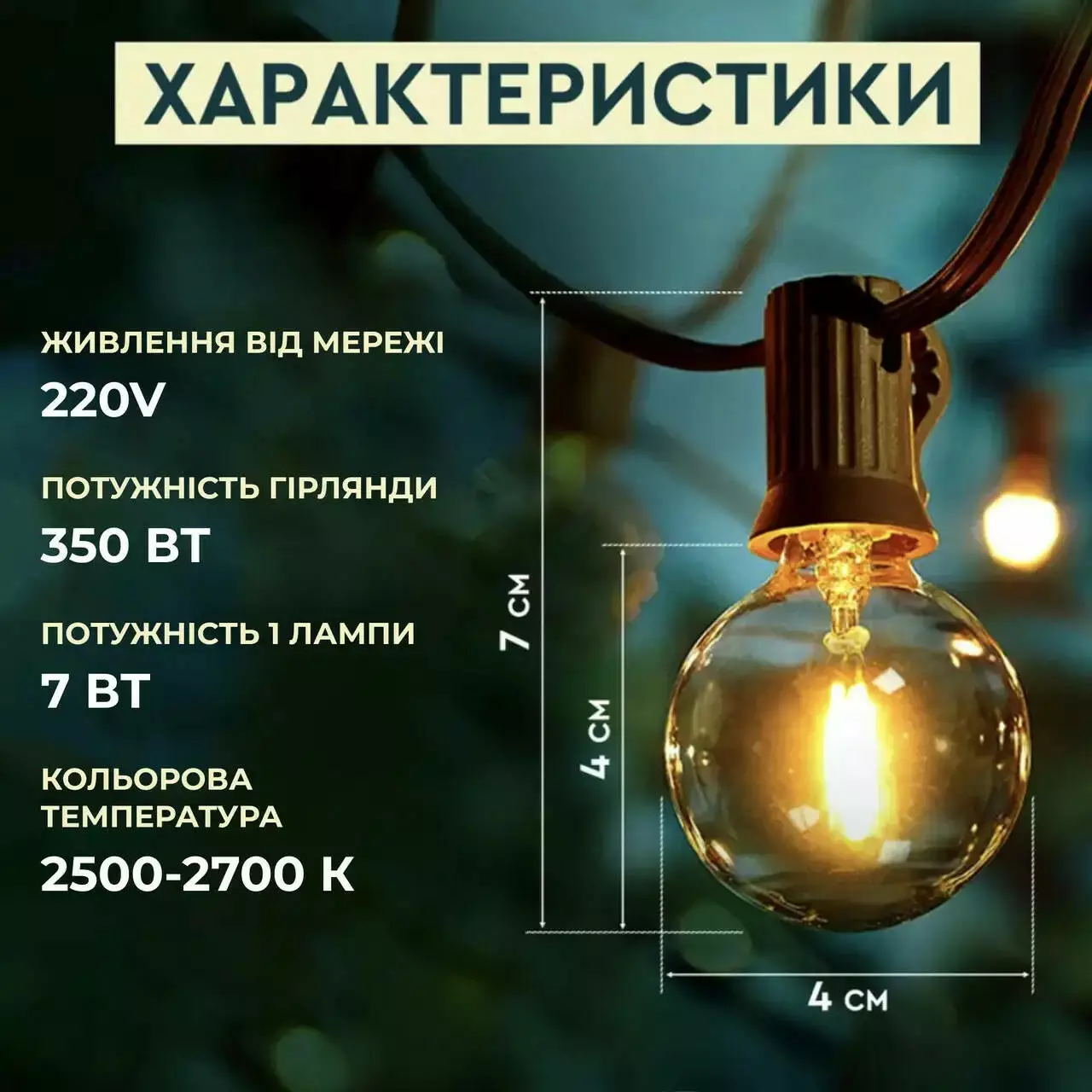 Гірлянда ретро вулична 25 LED ламп від мережі 9.5 м